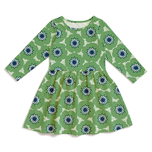 Only 1 left!Calgary Dress - Anemones Green & Navy