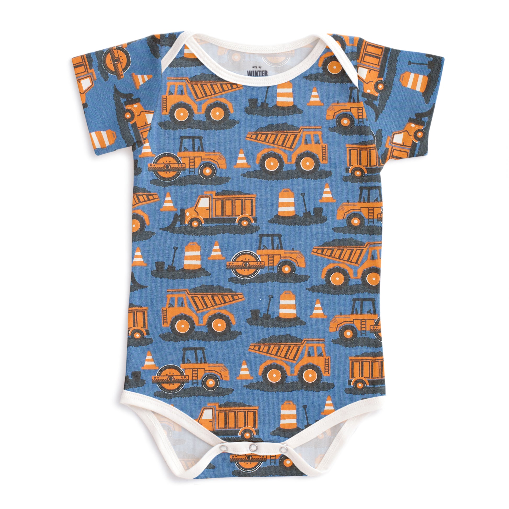 Short Sleeve Snapsuit - Roadwork Orange & Blue