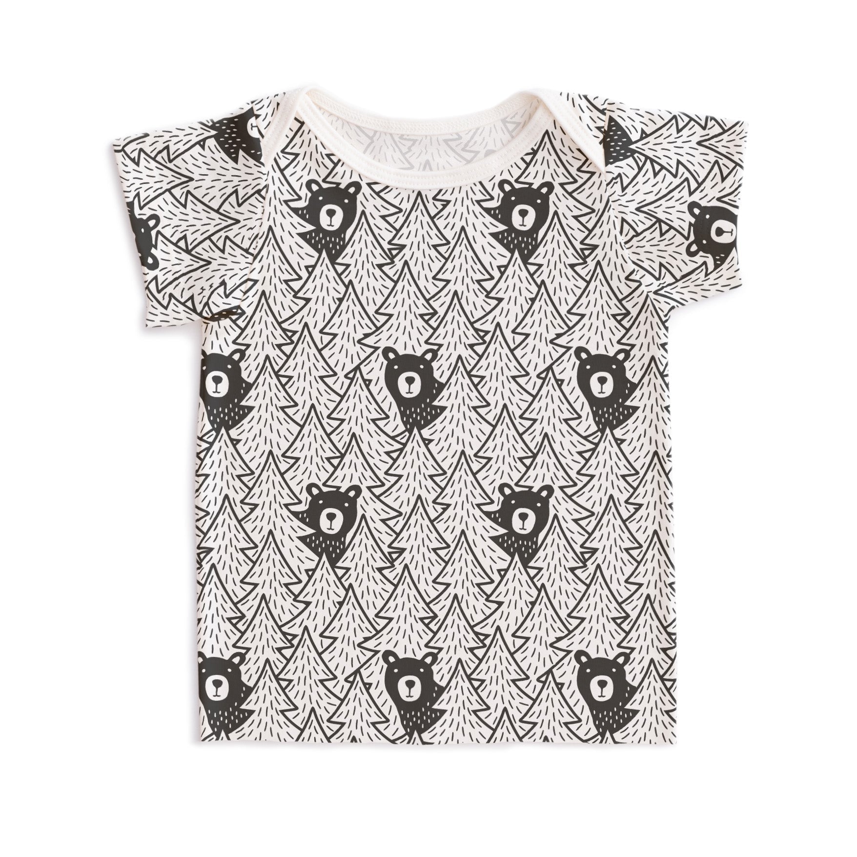 The cutest little lap tee, in our Bears print which features a curious bunch of bears peeking out from behind the pine trees.