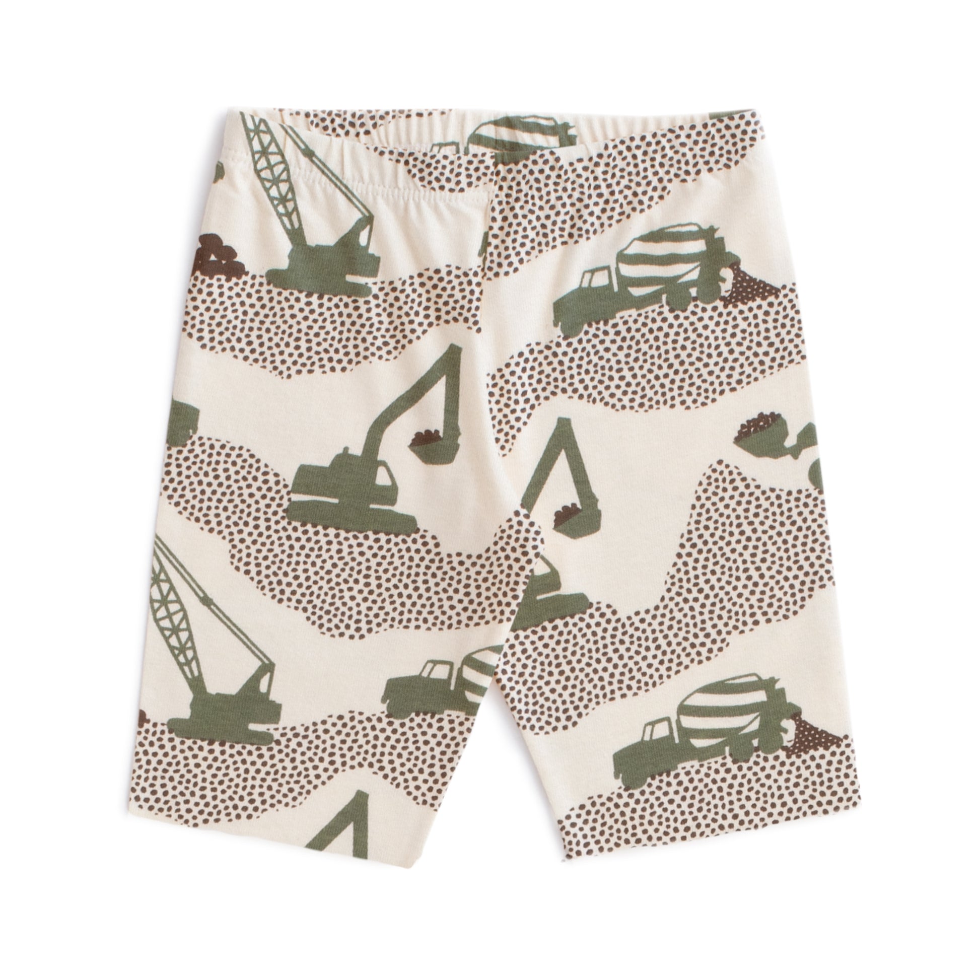 Our comfy bike shorts, in our Construction print! A construction site bustles as bulldozers, cranes, cement mixers, and excavators work hard to get the job done! A beloved classic now available in a limited-edition new colorway.
