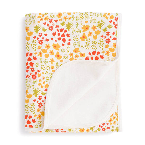 French Terry Blanket - Blockprint Floral Blue & Green