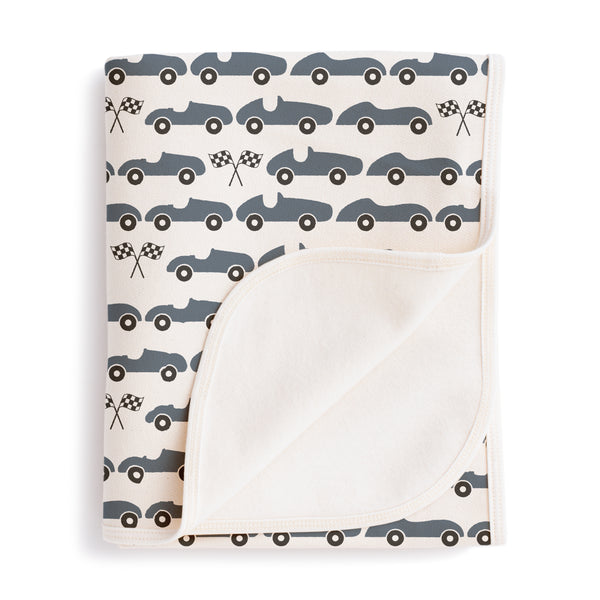French Terry Blanket - Construction Slate Blue & Grey