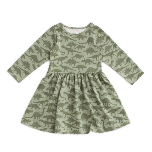 Calgary Dress - Dinosaurs Sage