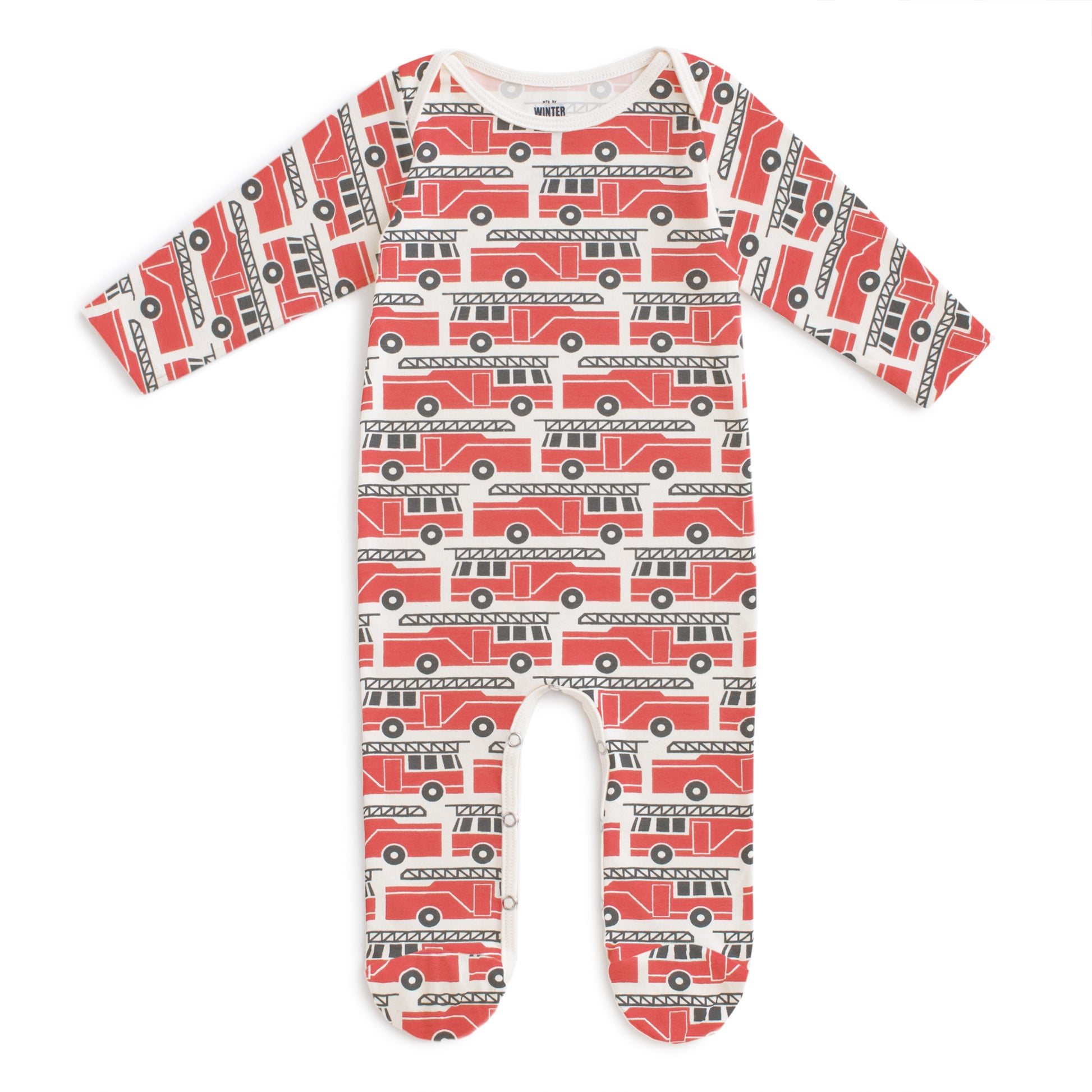 The most cuddly footed romper our Firetrucks print! To the rescue! They're off to save the day.