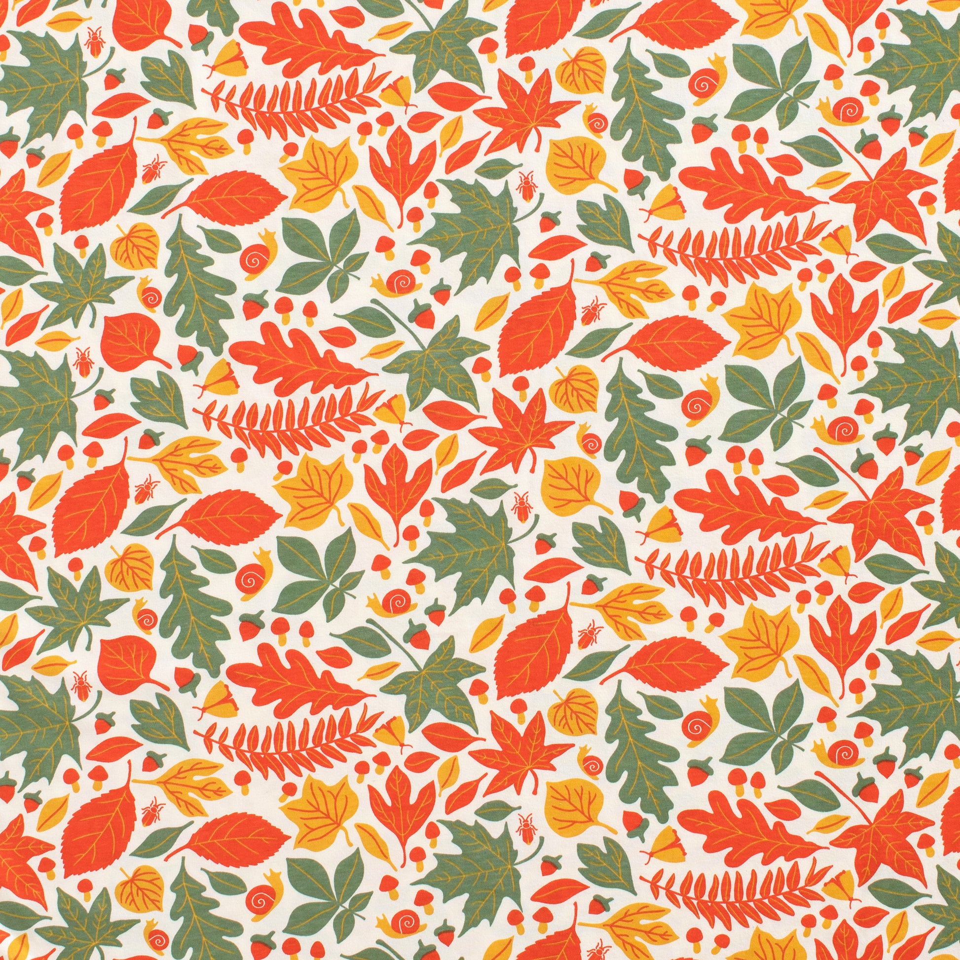 Their new favorite T-shirt, in our Leaves print. A playful scatter of fall leaves, acorns, mushrooms, and critters.