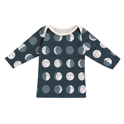 The cutest little lap tee, in our Moons print, the Moon waxes and wanes in a nighttime sky.