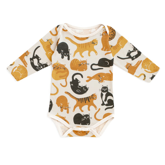 Only 1 left!Long-Sleeve Snapsuit - Cat Friends Gold & Yellow