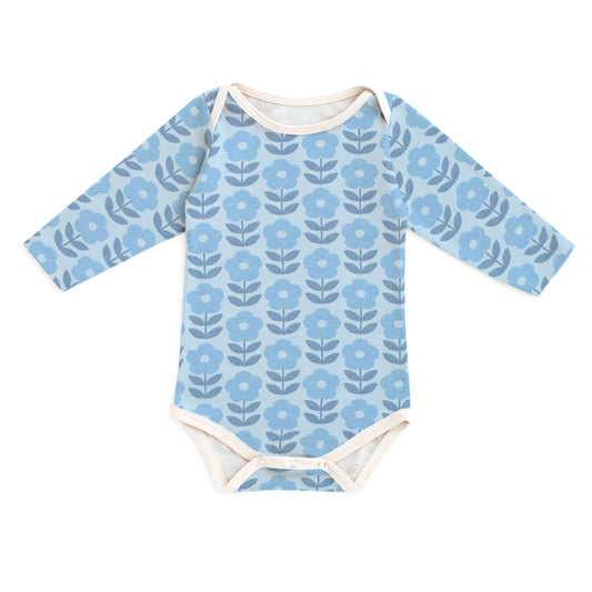 Long-Sleeve Snapsuit - Northern Animals Mountain Blue