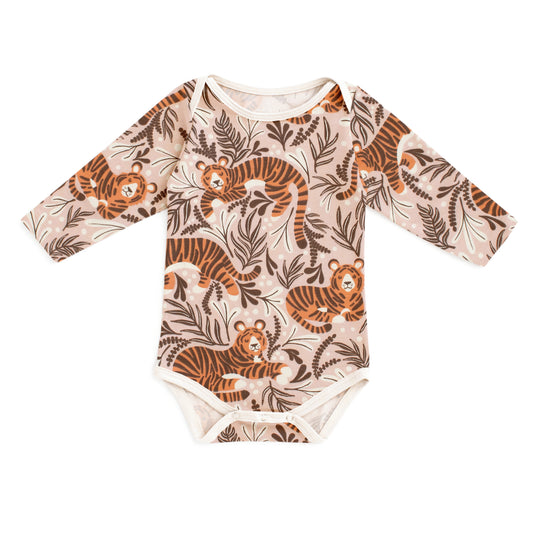 Only 1 left!Long-Sleeve Snapsuit - Dreaming Tigers Pink