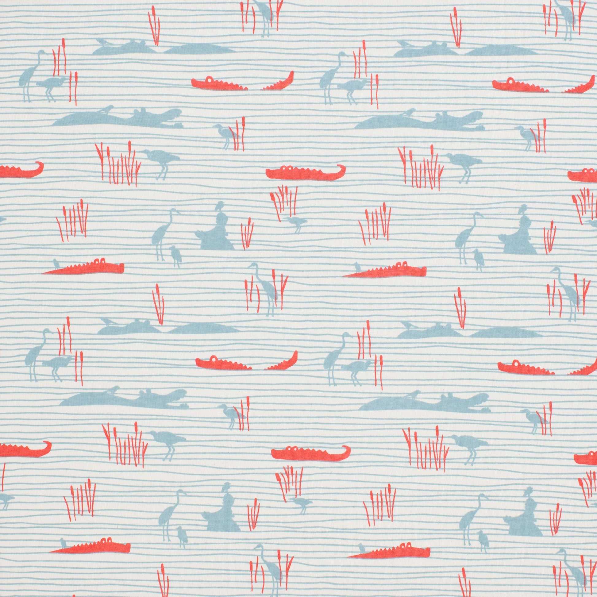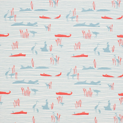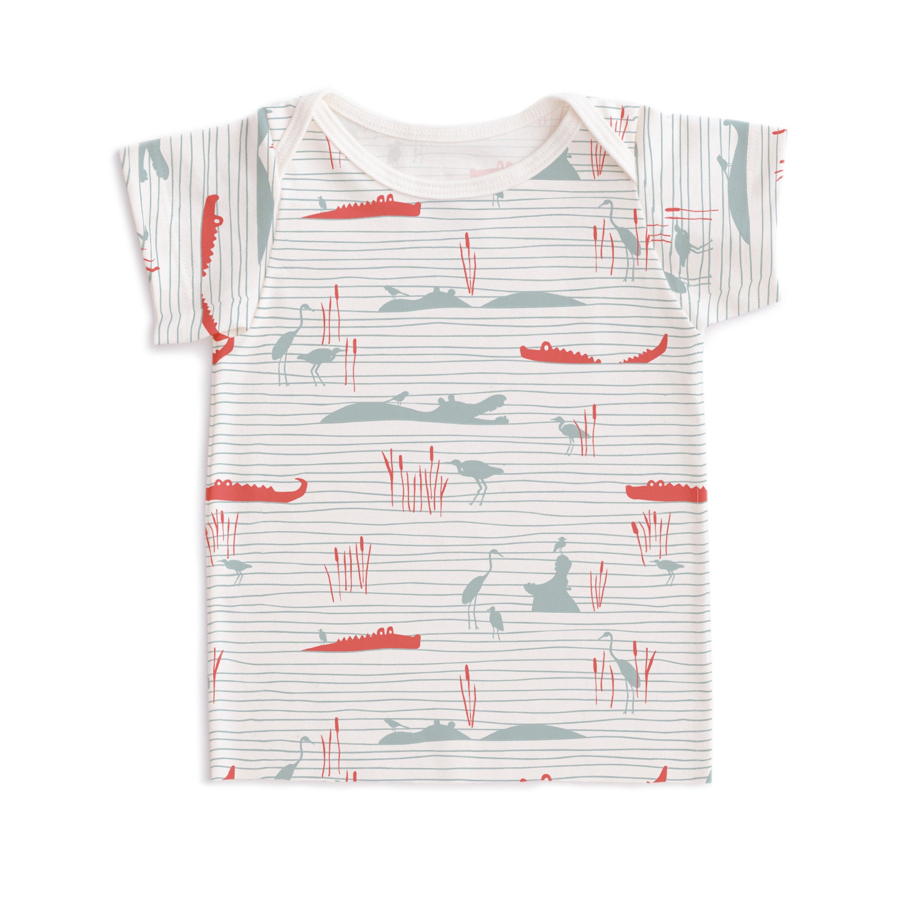The cutest little lap tee, in our Hippos & Crocodiles print! In low and murky waters, hippos & crocodiles swim along, sometimes stopping to say hello to the birds.