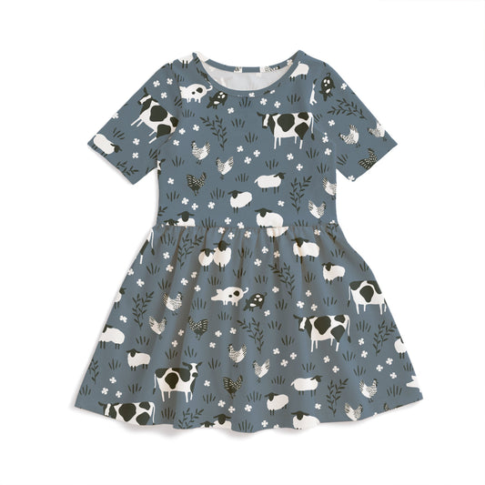 Short-Sleeve Lap Tee - Farm Animals Slate Blue