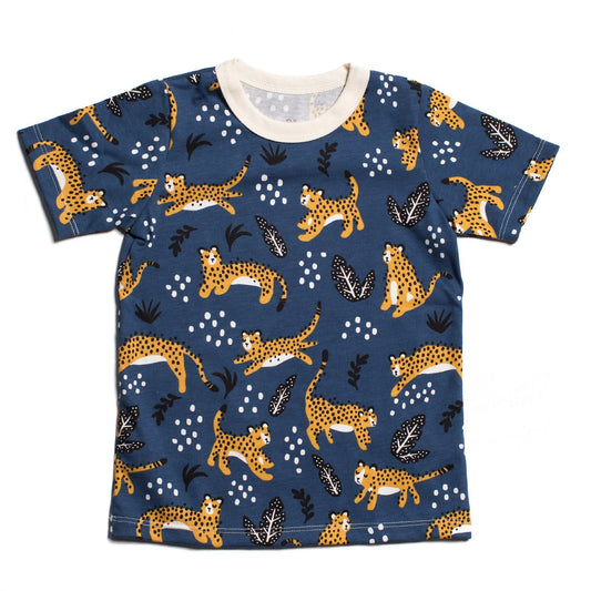 Short-Sleeve Lap Tee - Hippos & Crocodiles Ocean Blue & Coral
