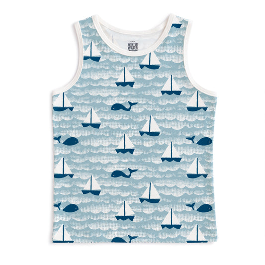 Short-Sleeve Lap Tee - Sailboats Ocean Blue & Navy