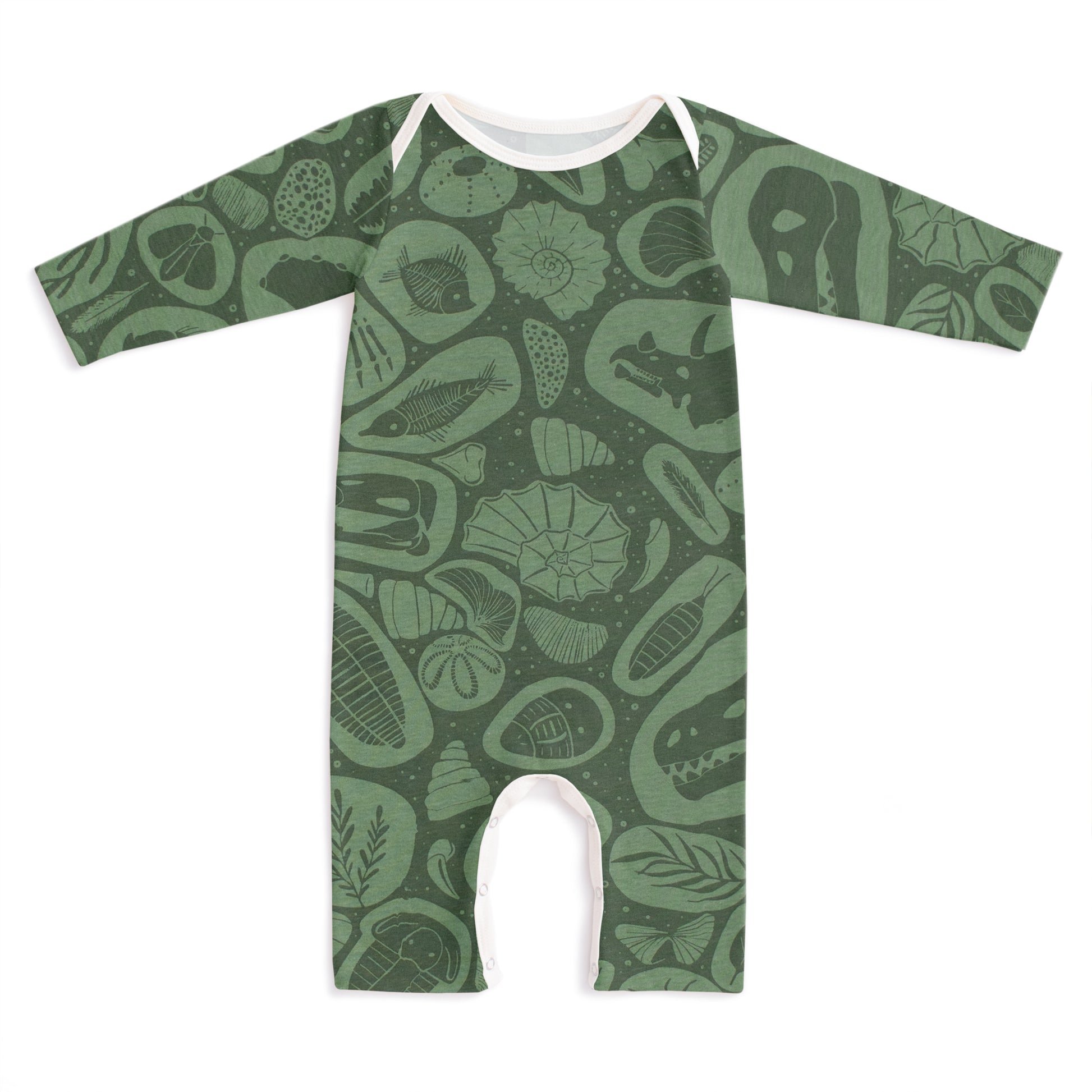 The perfect one-piece outfit, in our Fossils print. Budding paleontologists will dig studying these intriguing specimens and prehistoric relics.