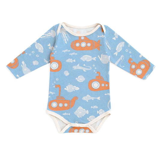 Only 1 left!Long-Sleeve Snapsuit - Submarines Blue & Orange