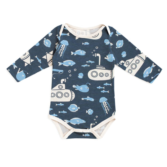 Only 3 left!Long-Sleeve Snapsuit - Submarines Navy & Blue