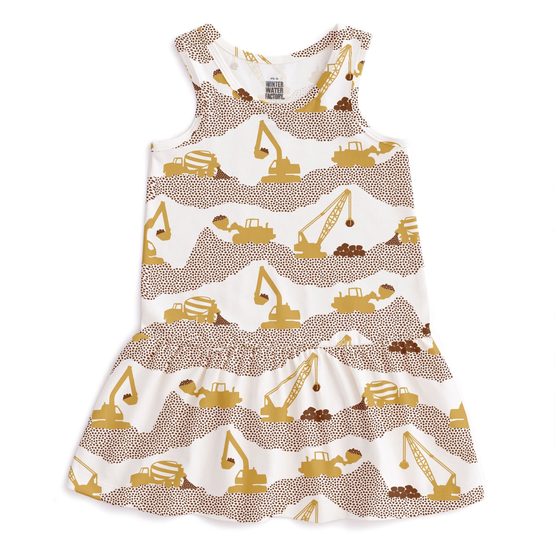 A dress for warm weather adventures in our Construction print! A construction site bustles as bulldozers, cranes, cement mixers and excavators work hard to get the job done!