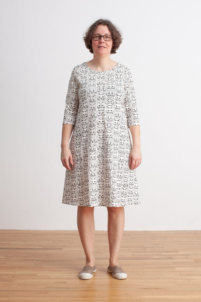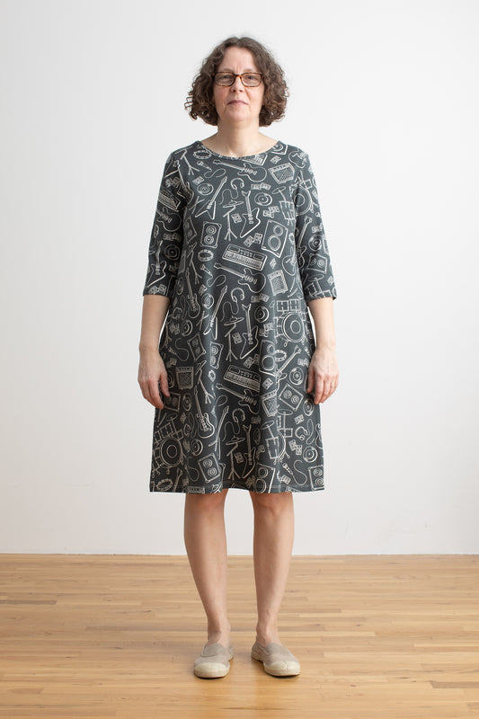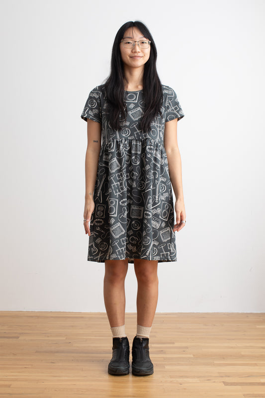 Copenhagen Dress - Midnight Owls Charcoal & Blue