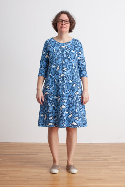 Helsinki Dress - Chickadees Navy & Blue