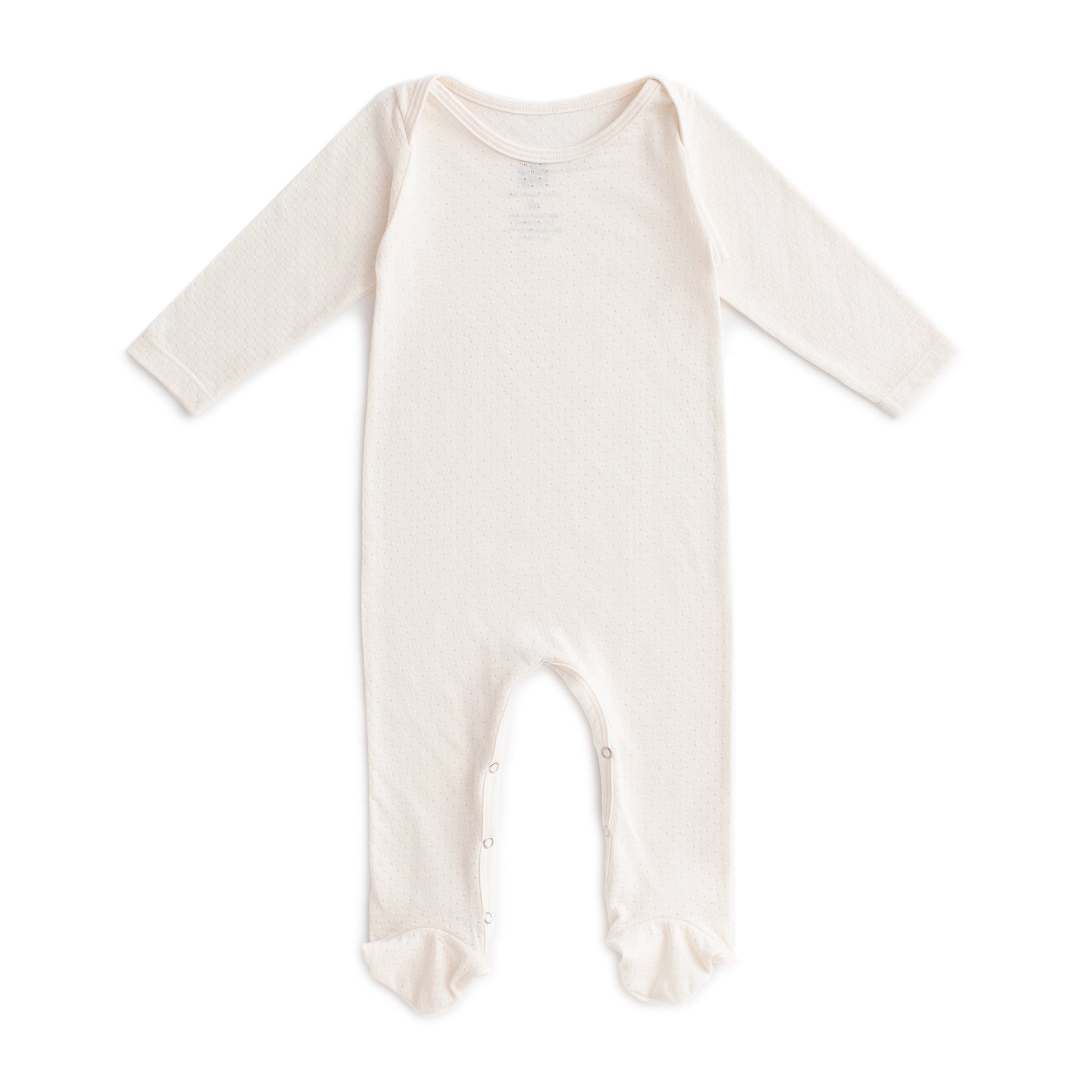 The most cuddly footed romper in our delicate and beautiful pointelle knit! So soft and airy - perfect for warmer months.