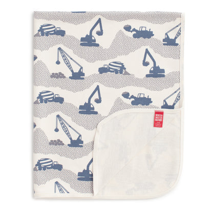 The most snuggly blanket, in our Construction print! A construction site bustles as bulldozers, cranes, cement mixers and excavators work hard to get the job done!
