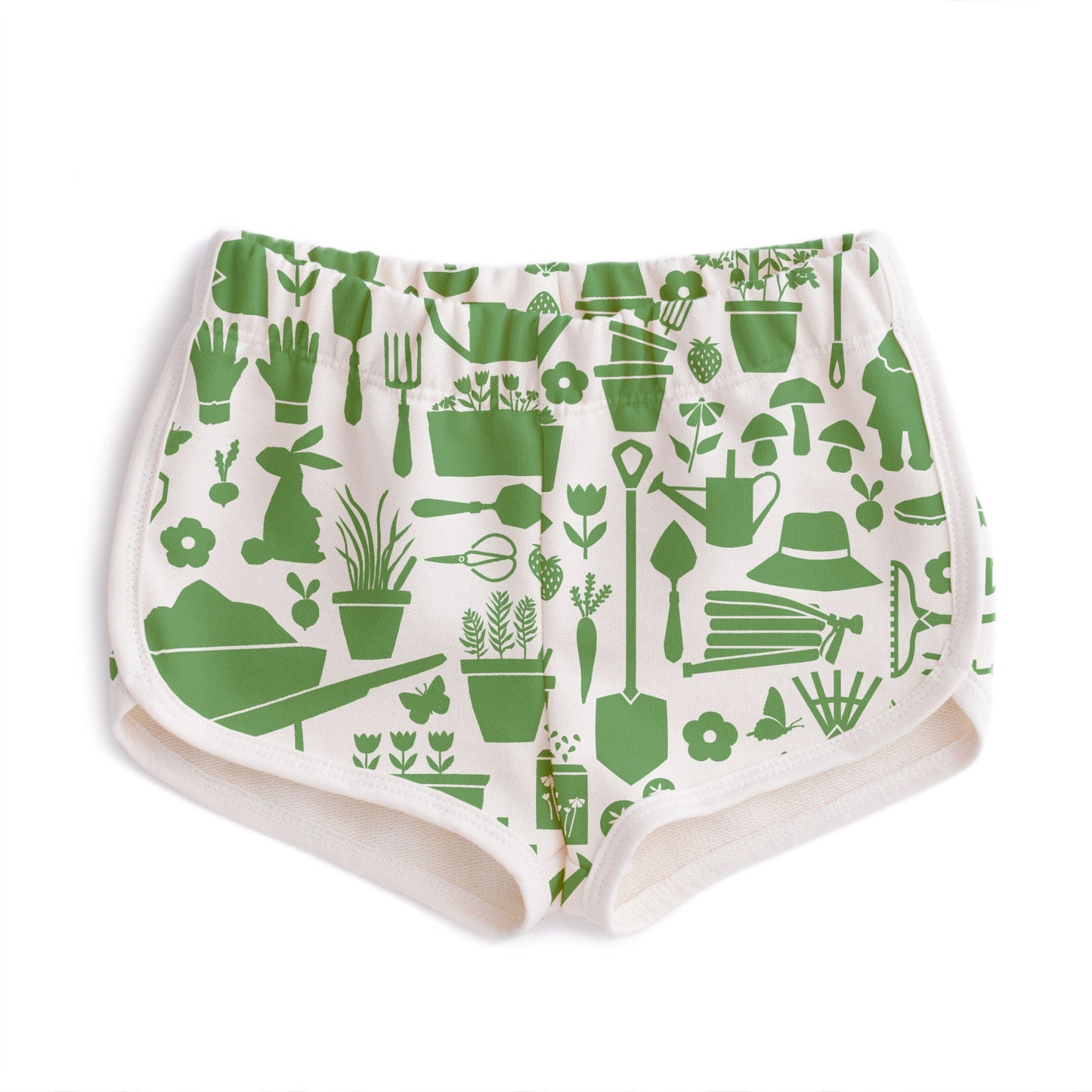 Our french terry shorts in our Garden Tools print, perfect for little budding gardeners - we hope you dig it!