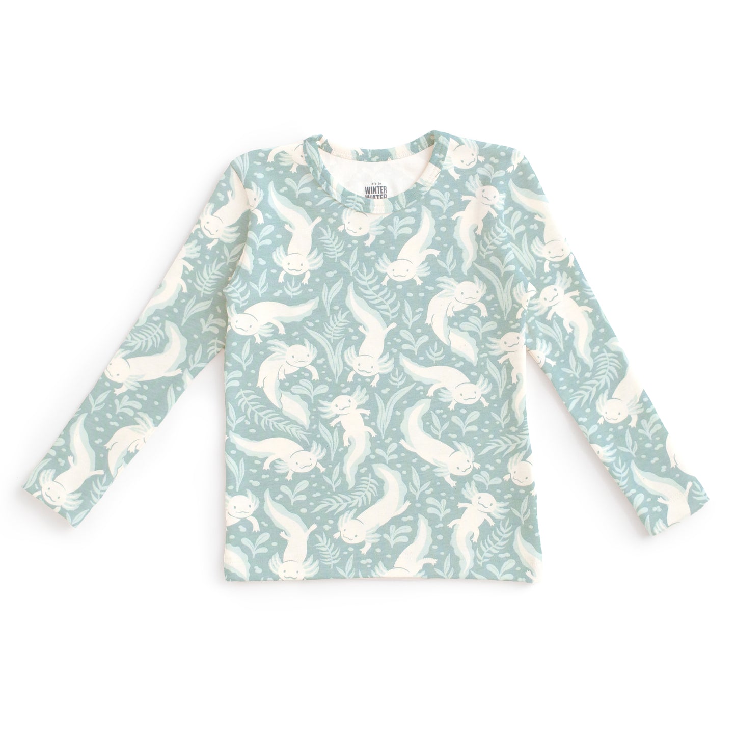 Bed time just got a lot more fun! Our cozy pajamas, in our Axolotls print featuring these cute aquatic creatures swimming all about.