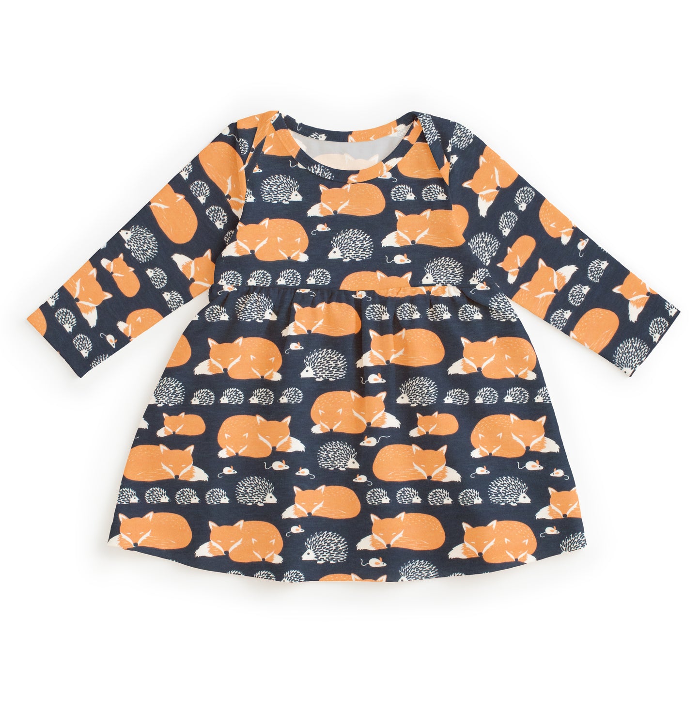 Lausanne Baby Dress - Foxes & Hedgehogs Night Sky