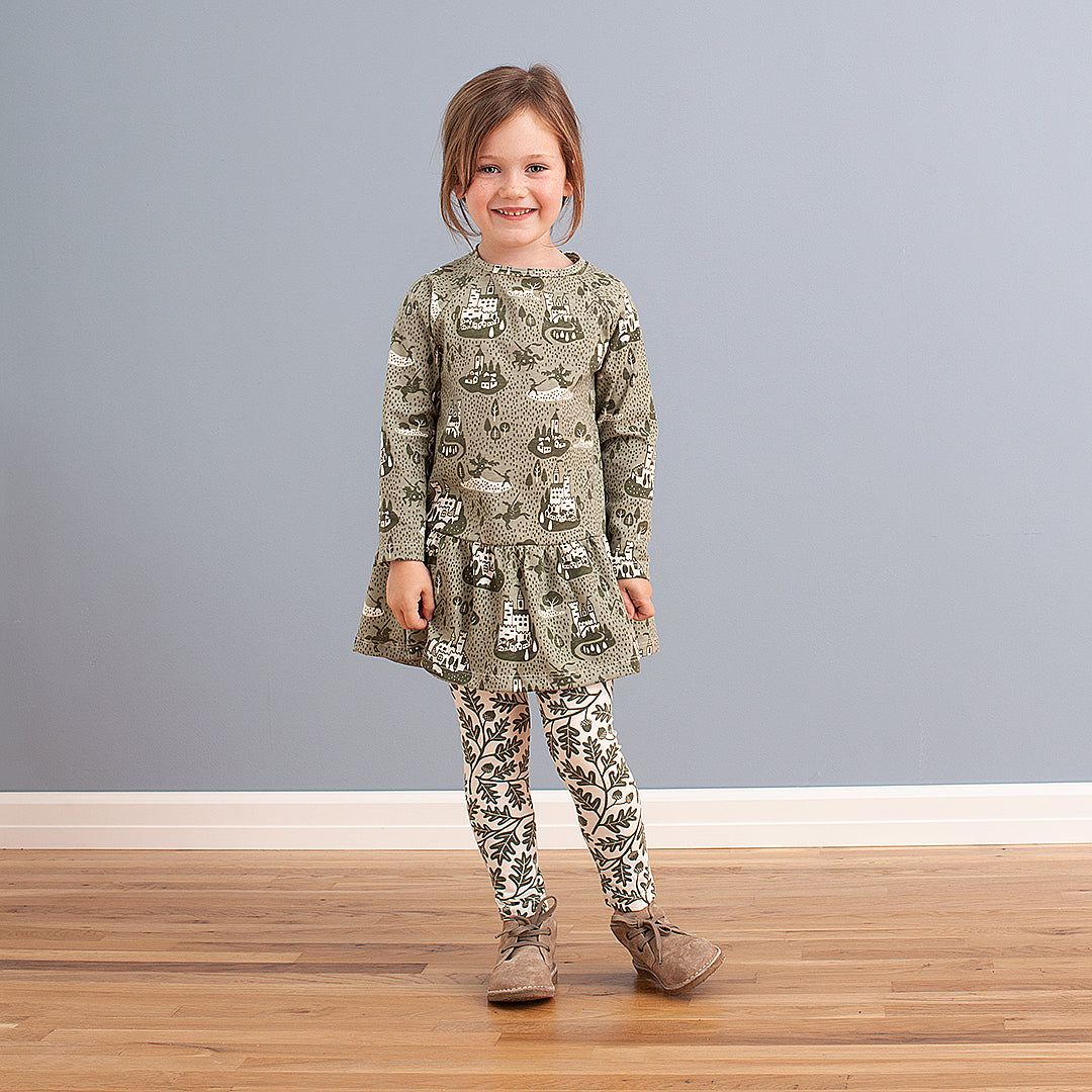 These comfy leggings capture all the best of being up north in the woods! Blues, greens and fun animal friends. They're great for tumbling, park trips etc - the fit keeps them from getting caught on equipment.