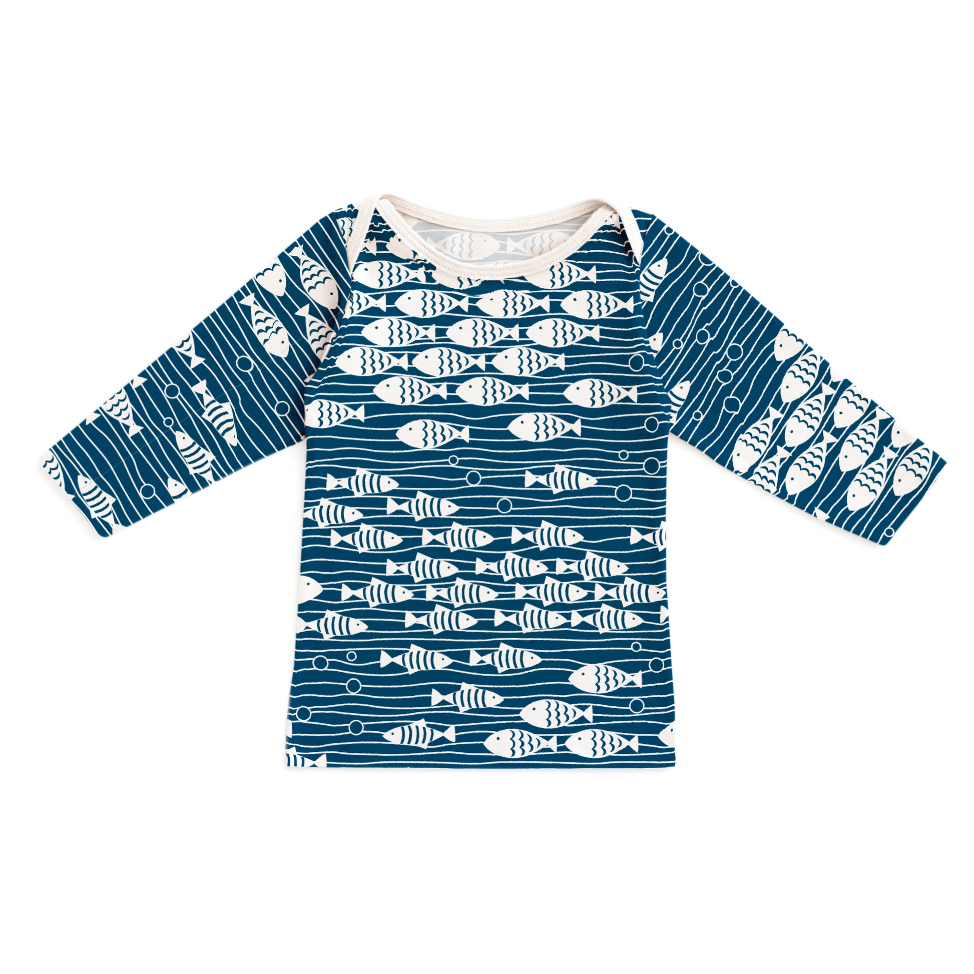 The cutest little lap tee, in our Under the Sea print, where schools of fish swim under the surf.
