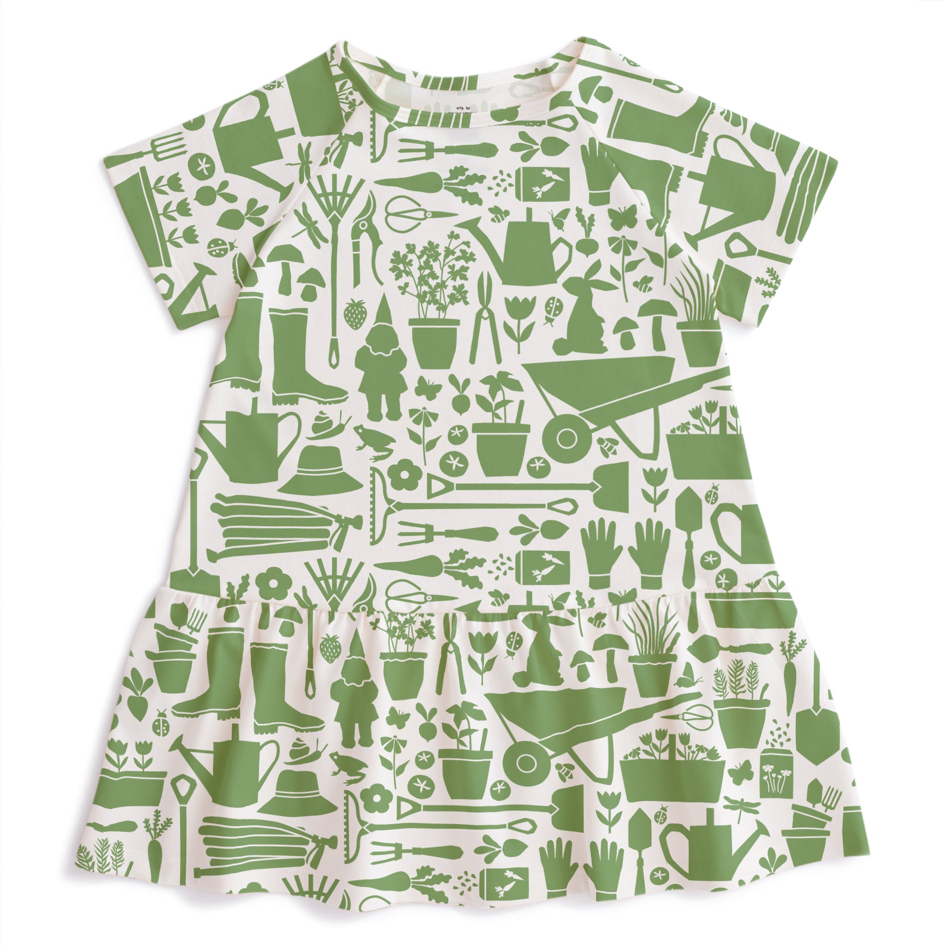 The most comfy, twirly dress of her dreams, in our Garden Tools print, perfect for little budding gardeners - we hope you dig it!