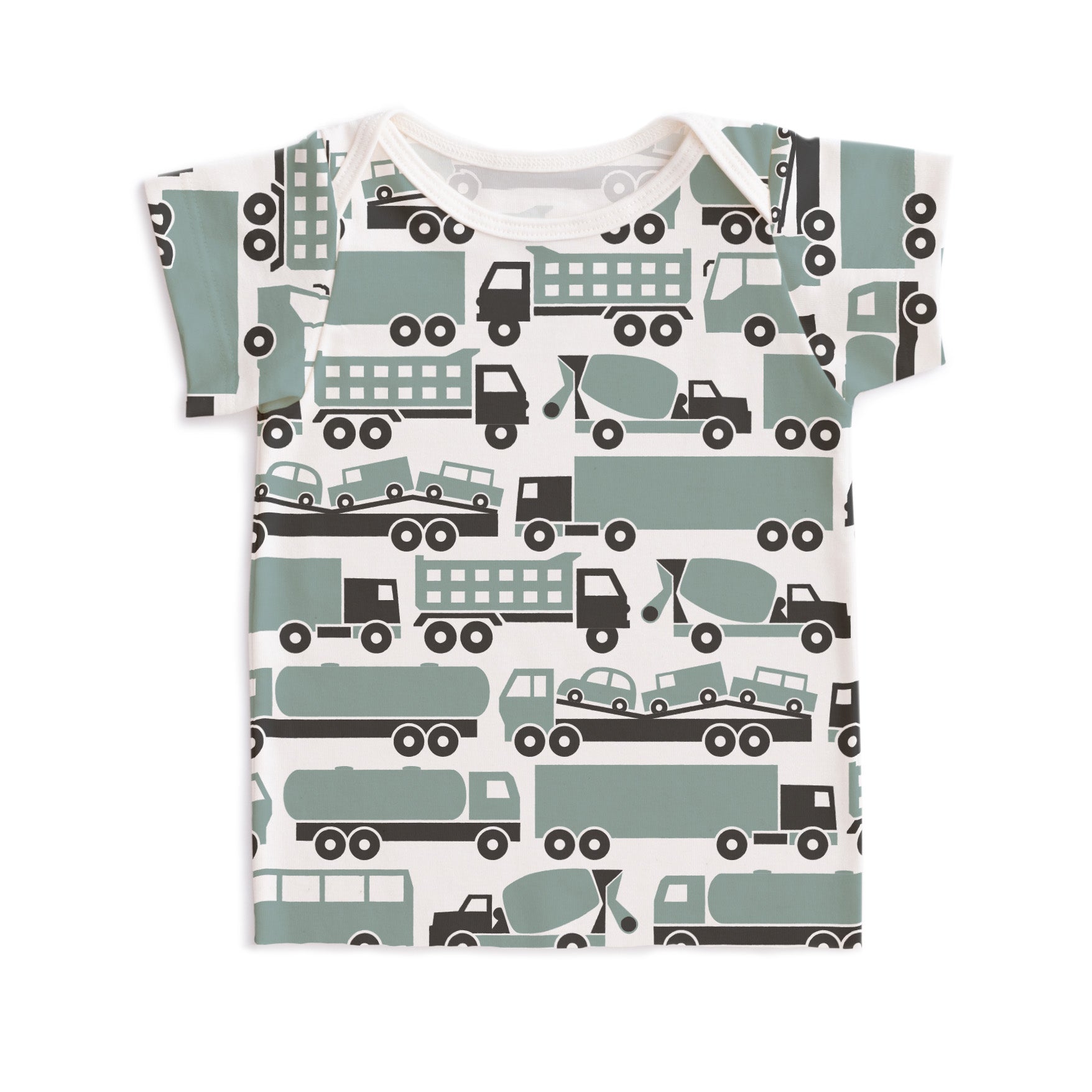 The cutest little lap tee, in our Big Rigs print. Honk honk! Big rigs rumbling down the road!