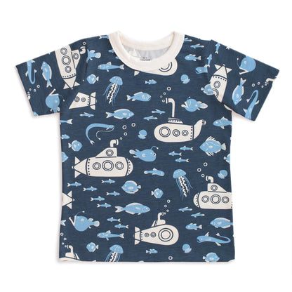 The perfect tee in our Submarines print featuring cool underwater vehicles floating amongst the fish.